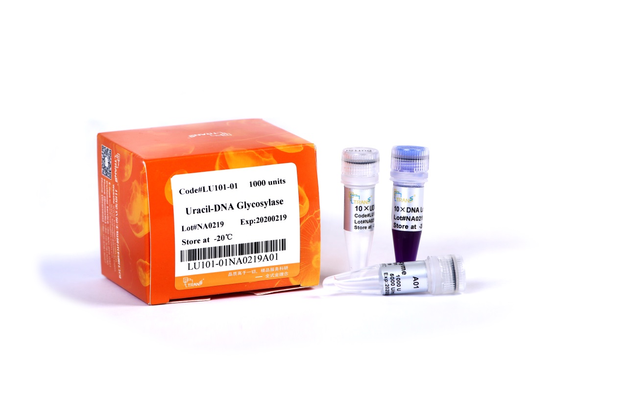 本產(chǎn)品由含重組E. coli Uracil-DNA Glycosylase (UDG)基因的載體,在大腸桿菌中經(jīng)誘導表達、純化而成,其分子量大小為26.5 kDa。UDG酶催化單鏈或雙鏈DNA中尿嘧啶的釋放,但對寡聚DNA (n≤6 bases)無效。