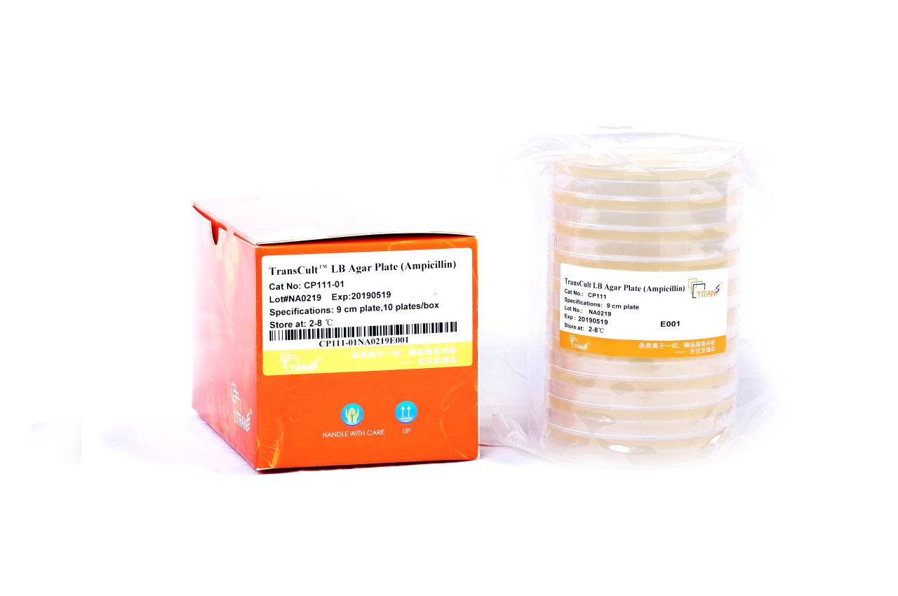 本產(chǎn)品為即用型LB瓊脂平板培養(yǎng)基,含有50 μg/ml的氨芐青霉素。平板規(guī)格為9 cm直徑,每塊平板的培養(yǎng)基體積為20 ml。