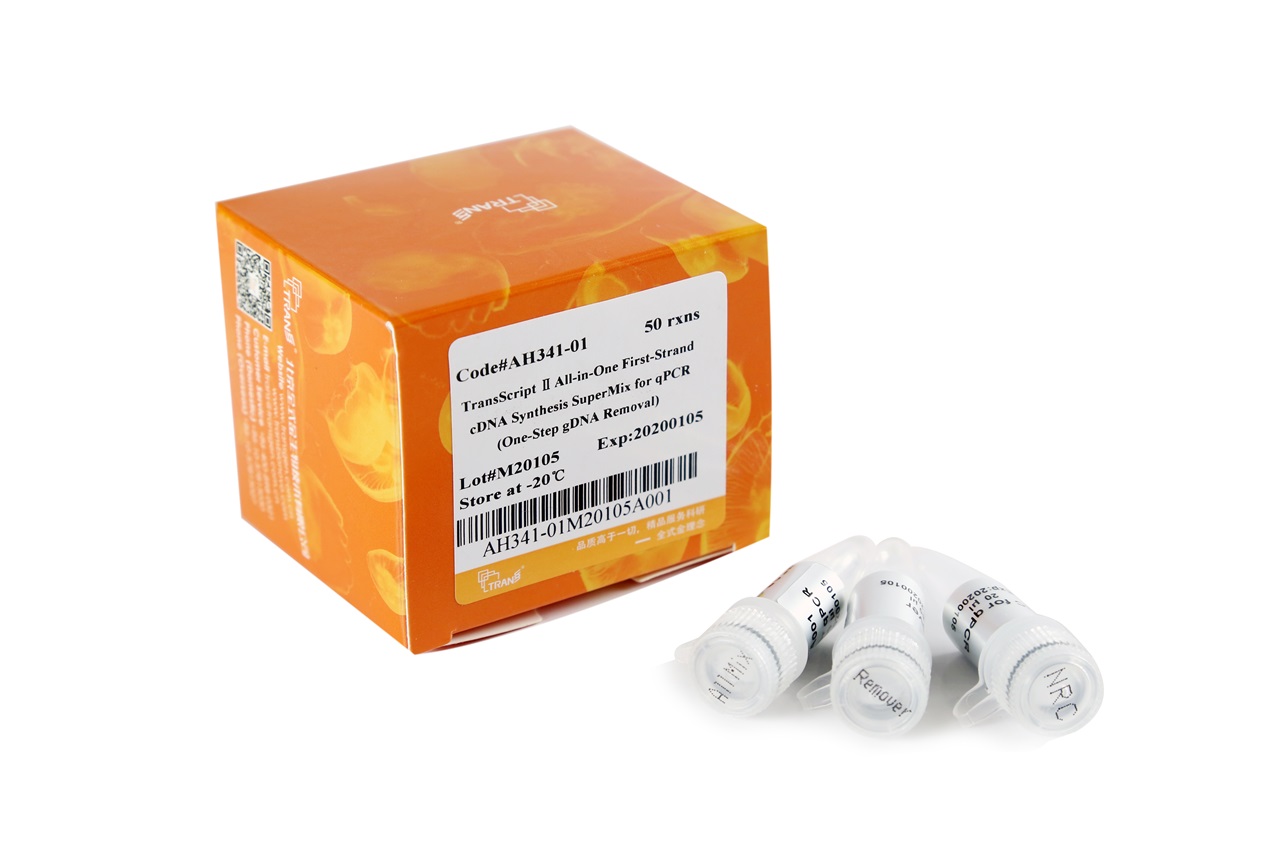 本產(chǎn)品含有反轉(zhuǎn)錄反應(yīng)所需的全部試劑(TransScript? II RT, RNase Inhibitor, Anchored Oligo(dT)20 Primer, Random Primer(N9), dNTPs, Buffer),濃度為5×。反應(yīng)時(shí),只需加入gDNA Remover、模板RNA和水,在42℃-55℃條件下即可高效地合成第一鏈cDNA,同時(shí)去除RNA模板中殘留的基因組DNA。另配有5×TransScript? II All-in-One No-RT Control SuperMix for qPCR,用于配制無反轉(zhuǎn)錄酶的對(duì)照,判斷qPCR模板是否來自cDNA。該產(chǎn)品操作簡(jiǎn)便,降低操作過程中的污染機(jī)率。cDNA只適用于qPCR,不適用于常規(guī)PCR。